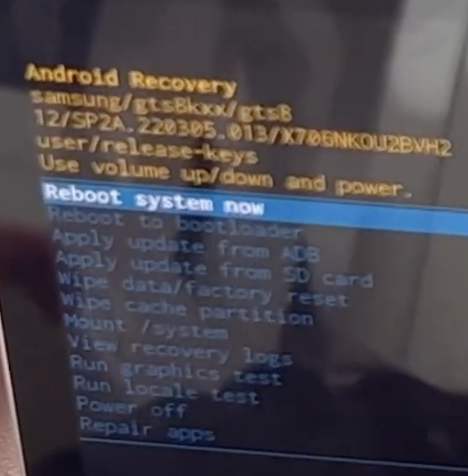 위와 같은 화면이 나오면 음량키 아래를 눌러서 <Wipe data/factory reset>를 선택합니다.