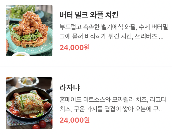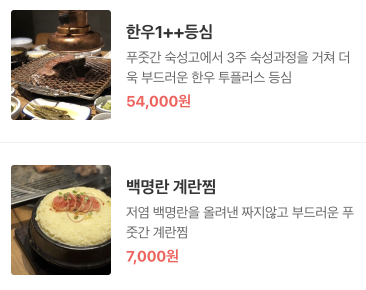 메뉴 및 가격
