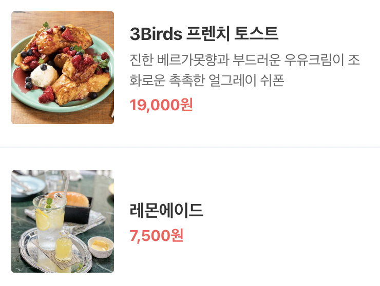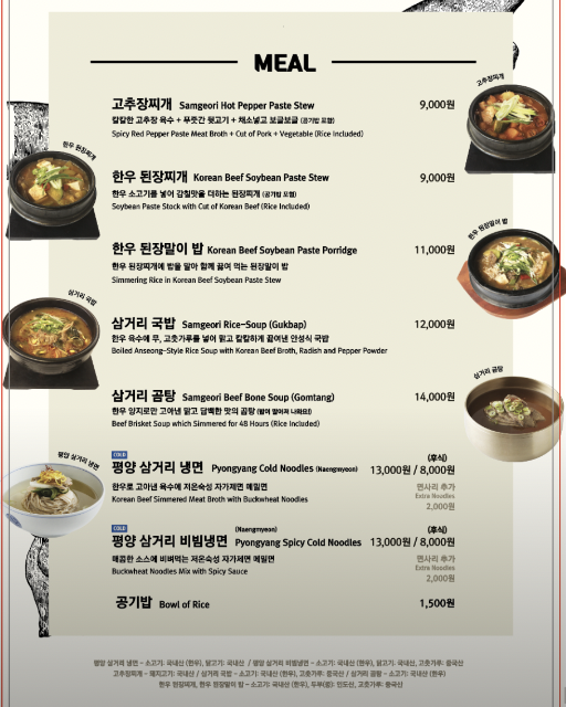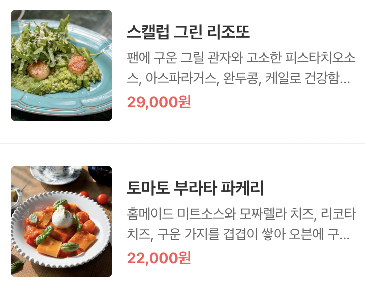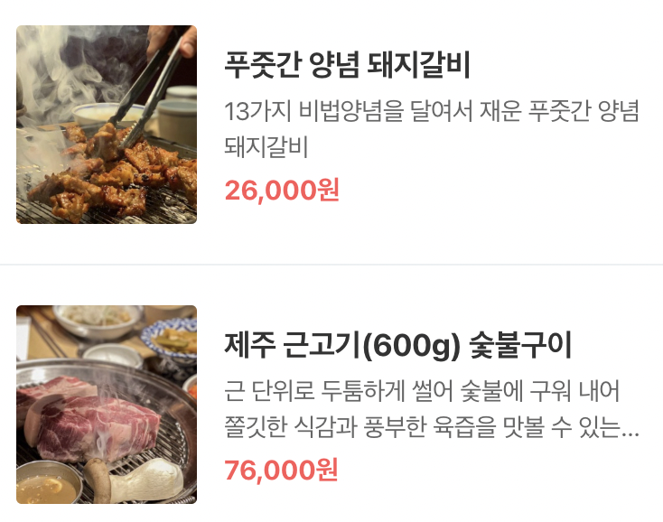 메뉴 및 가격