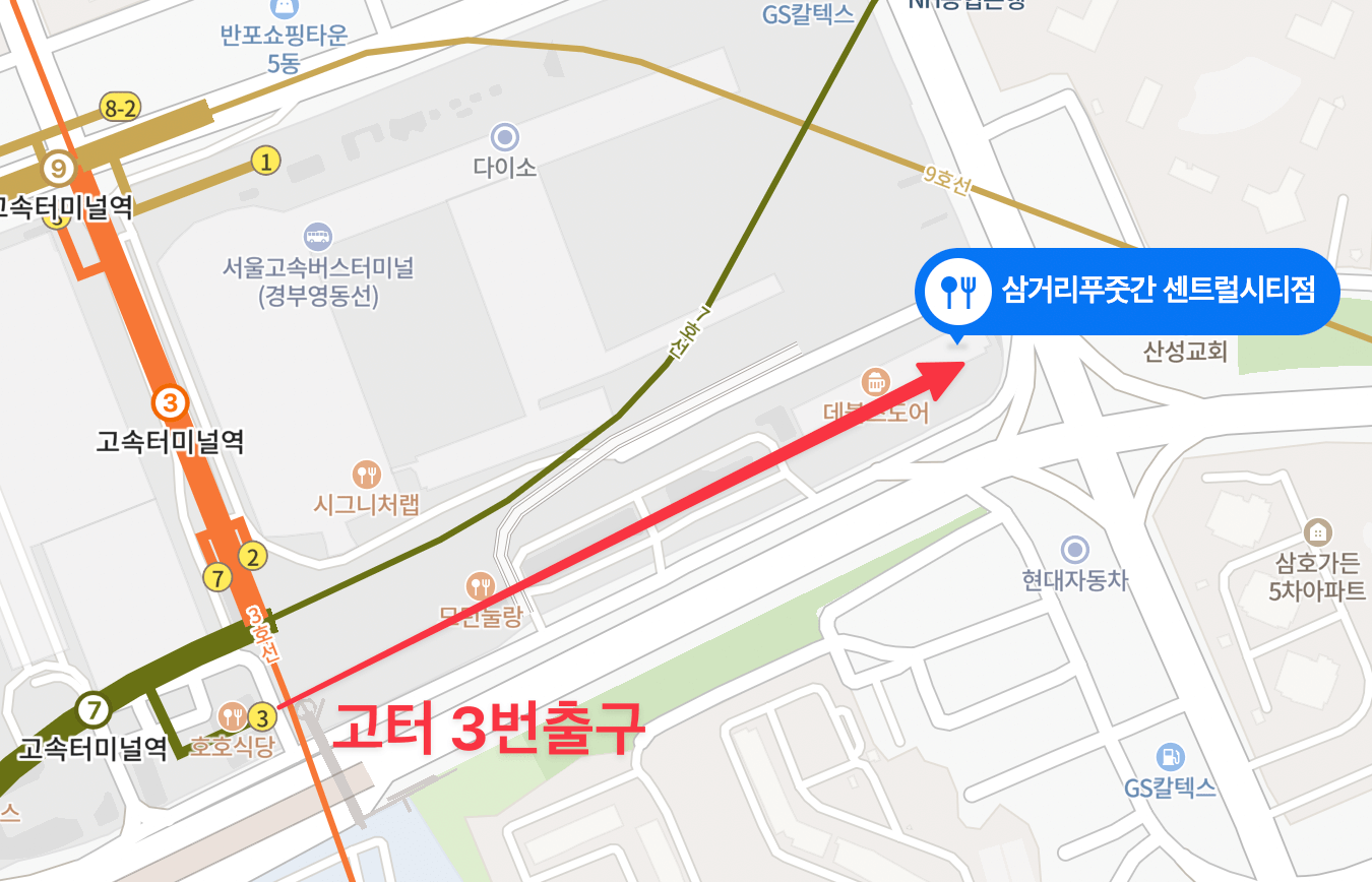 고속터미널역 3번출구로 나와서 직진하면 됩니다.