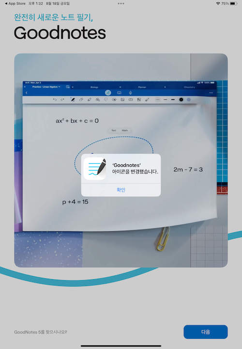 역시 기존 굿노트5 아이콘으로 변경되면서 다운그레이드가 완료됩니다.