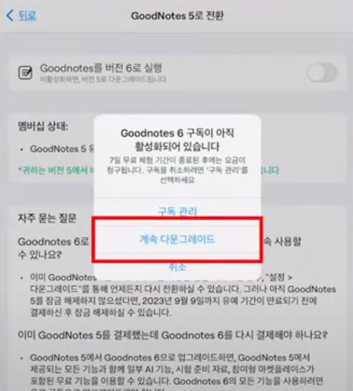 굿노트6 다운그레이드 메뉴 안보이는 경우 해결방법 | 구입내역 확인