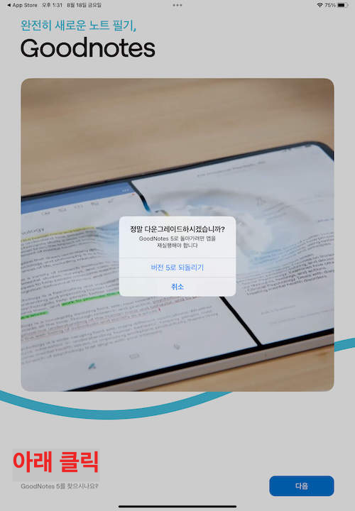 이렇게 되면서 굿노트 5로 다운그레이드가 완료됩니다.