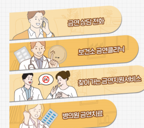 금연캠프도 운영하고 있는데 장기 흡연자를 위해 4박 5일간 지역금연지원센터 병원 등에서 의료인이 제공하는 전문 금연프로그램을 제공하고, 사후 6개월간 관리를 해줍니다. 전국 17개 지역금연지원센터와 연계하여 이루어집니다.