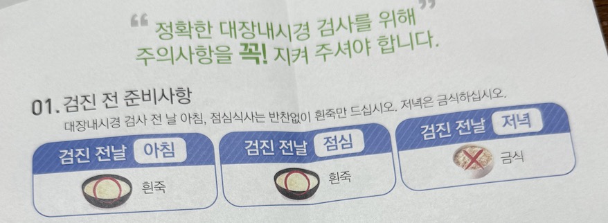 하지만 대부분 사람들이 그렇듯 저도 검사 2일 전까지는 그냥 일반적인 식사를 한 것 같네요. 반성합니다.