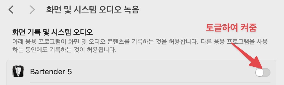 그리고 두번째 Open macOS Screen Recording Settings를 켜준다.