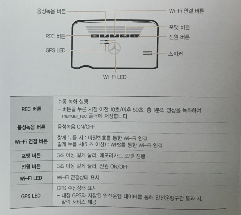 반드시 블랙박스 상에 있는 와이파이 버튼을 클릭하여 활성화 한다음에 연결해야 한다는 사실을 기억해야 합니다. 블랙박스의 와이파이 버튼의 위치는 아래의 버튼 설명 매뉴얼을 참고하세요.