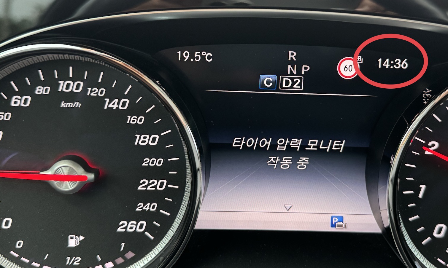 타이어 압력 모니터 작동중으로 표기가 됩니다. 14: 36분이니 약 7분 후에 변화된 것입니다.
