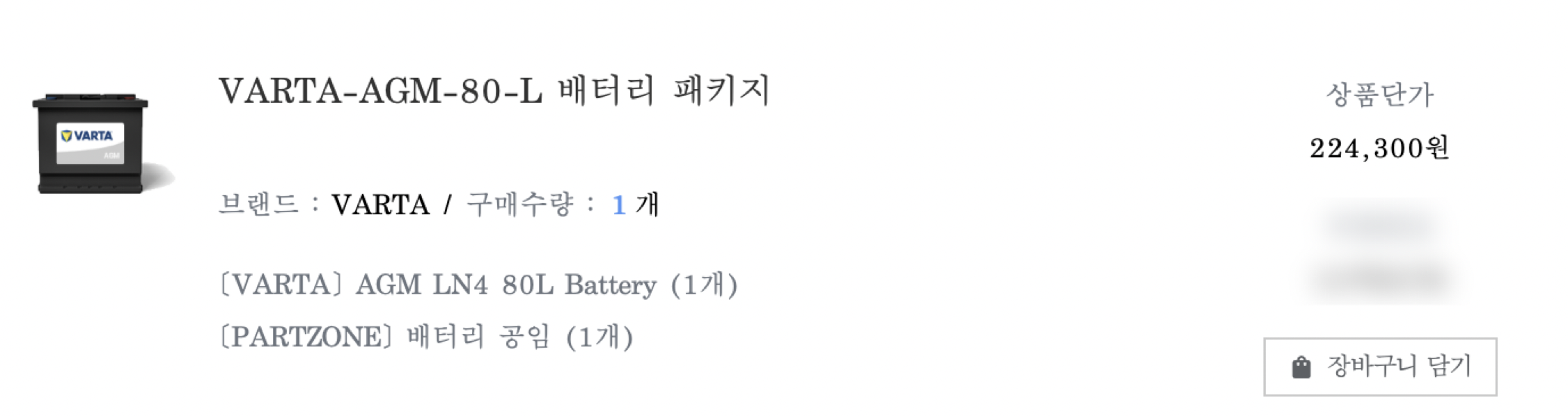 주로 언급되는 것은 Varta AGM 80A LN4였고, 부품 가격은 아래와 같았다.