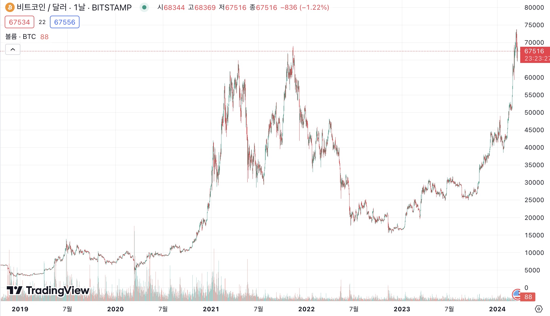 그렇게 비트코인을 공부하다 보면, 그동안의 거래소 해킹 사건(FTX, 마운트곡스)도 알게 되고, 루나와 같은 코인 사기에 대해서도 알게 됩니다. 그럼에도 불구하고 비트코인은 계속 블록을 만들어가고 있고, 가격도 꾸준히 우상향 하고 있음을 알게 됩니다.