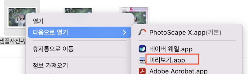 - Mac에서는 사진 파일을 우클릭하고 미리 보기 앱