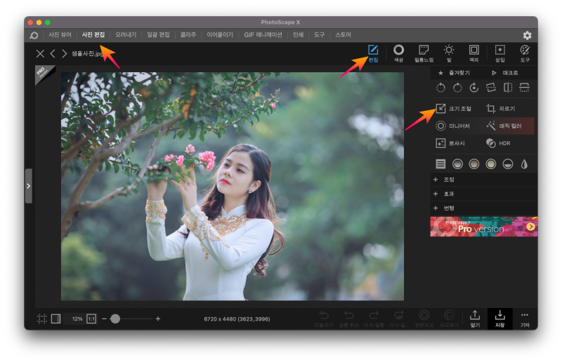 애초에 우리가 받은 사진의 크기는 6720x4480 크기였습니다.