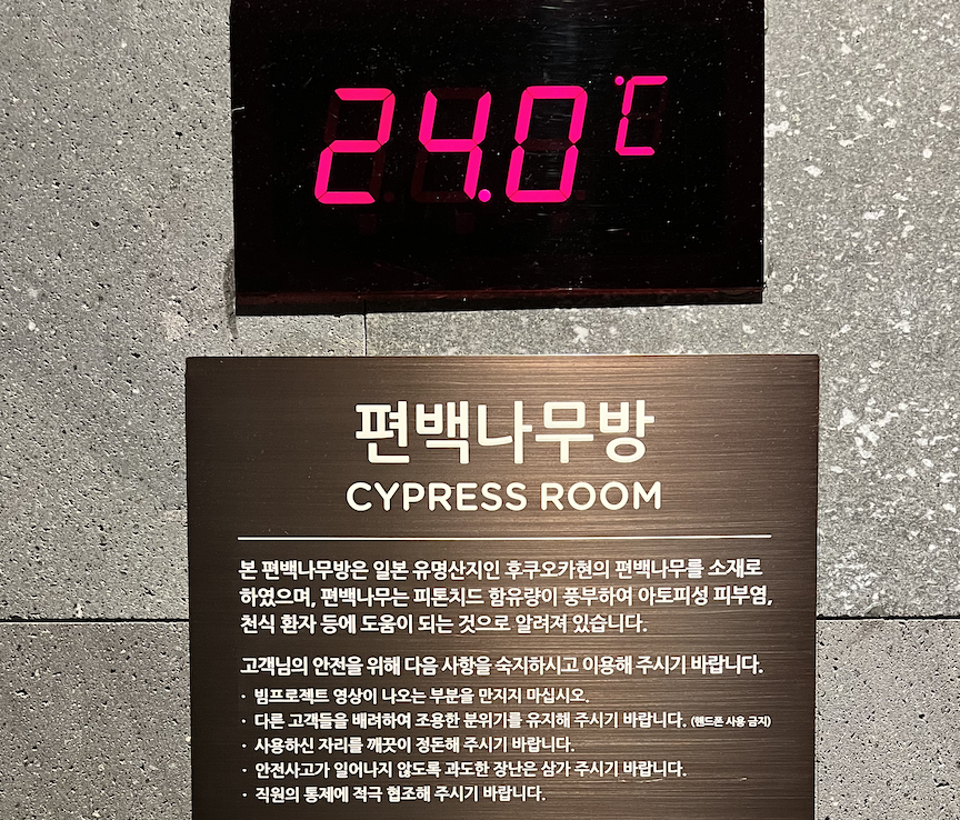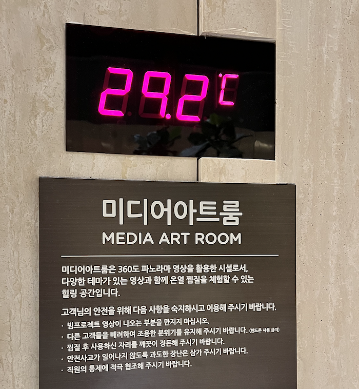 개인적으로 가장 만족스러운 곳은 맥반석룸과 미디어아트룸 그리고 편백나무방입니다.