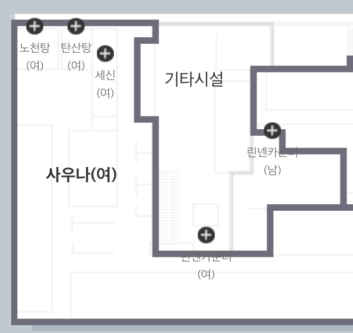 하남의 경우 아래와 같이 일자형으로 찜질스파가 위치해 있습니다.