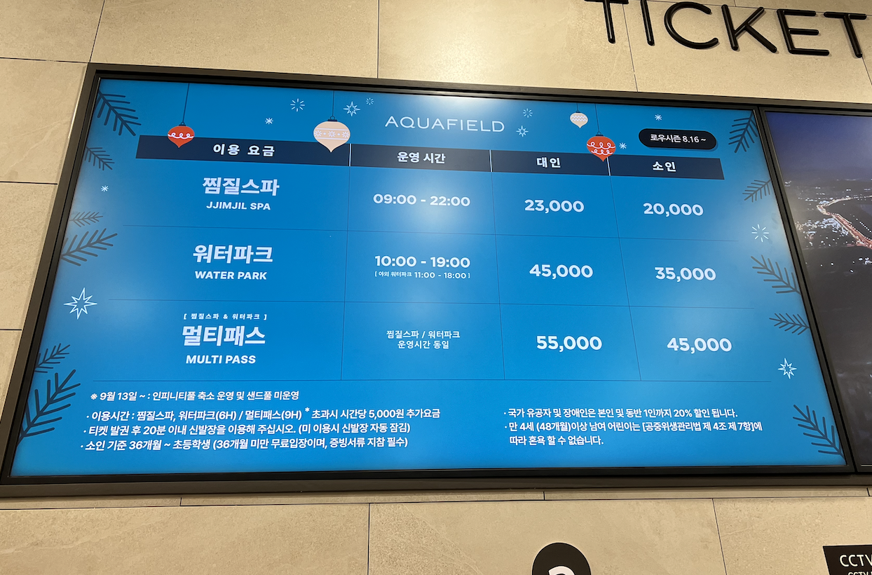 아쿠아필드는 스타필드 안에 있는 찜질방과 스파, 그리고 물놀이를 할 수 있는 공간입니다.