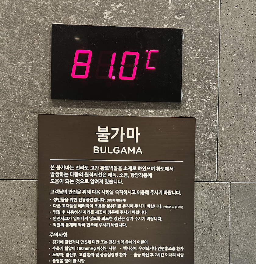 가장 높은 온도의 불가마는 사우나를 좋아하시는 분들 도전해보시길.