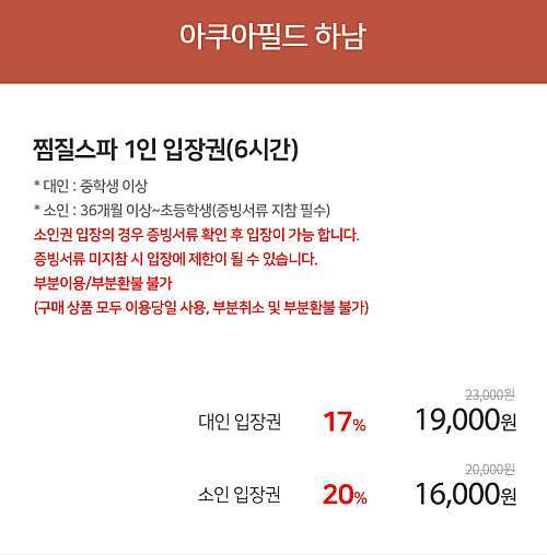 여기에서 하남주민 30% 할인을 할 경우 성인 23,000원이 16,100원입니다.