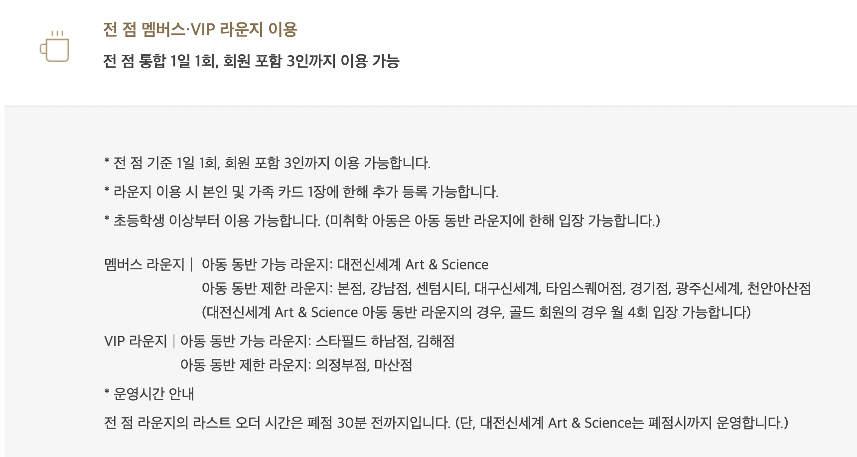 - 멤버스 바 : 라운지는 아니고 커피만 받아 갈 수 있는 곳