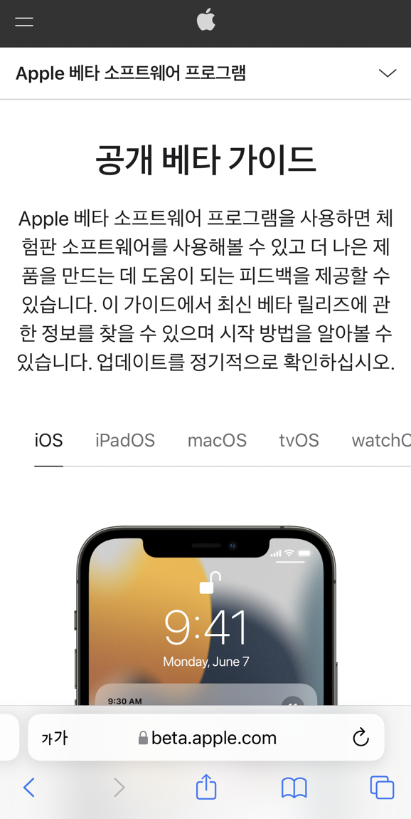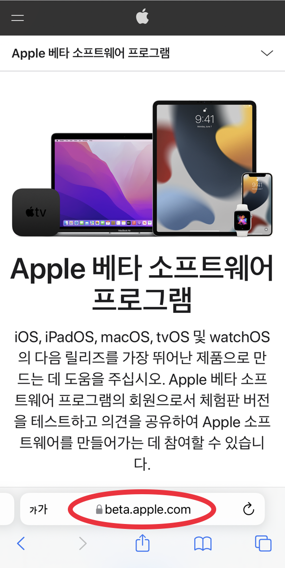 애플 홈페이지 betaprofiles.com에서 등록이 가능합니다.