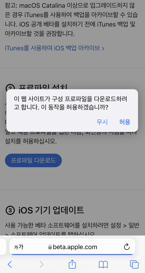 아이폰 베타 프로파일 다운로드