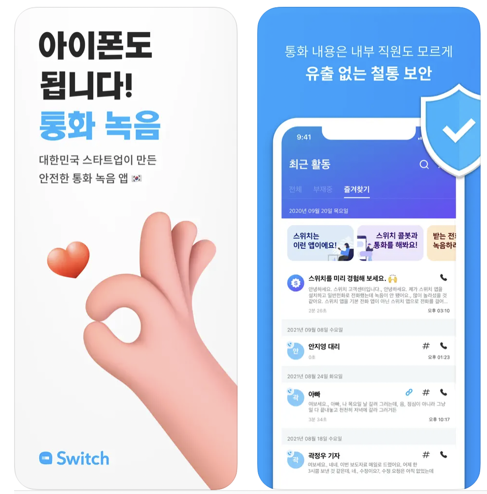 스위치를 이용하면 아이폰도 통화녹음을 할 수 있습니다.