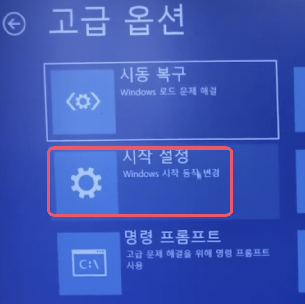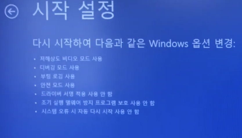 마지막에 <시작 설정 - 다시 시작> 클릭