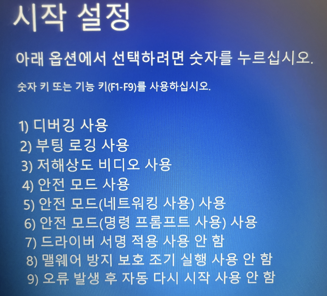 여기에서 4번 안전모드 사용으로 들어가면 됩니다.