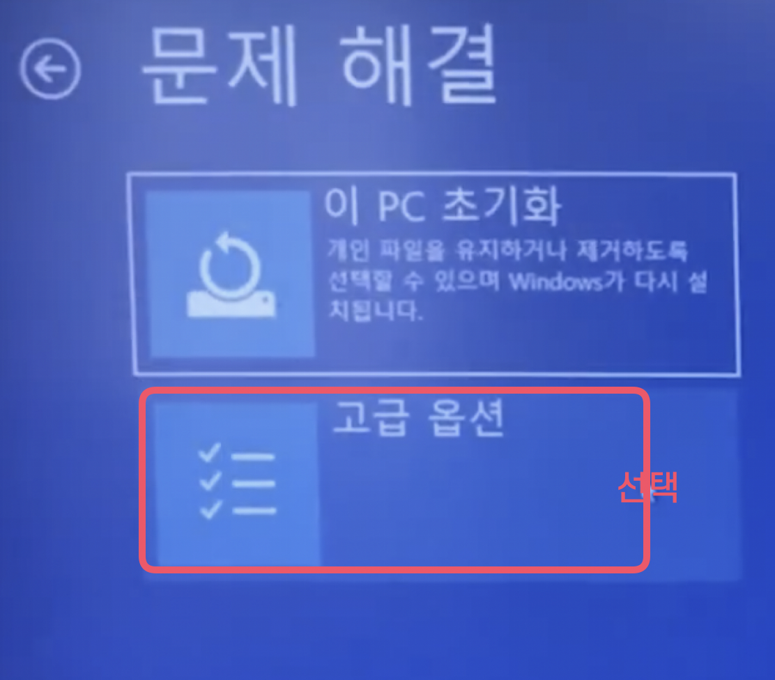 그러면 아래와 같이 옵션선택하기 화면이 나옵니다.
