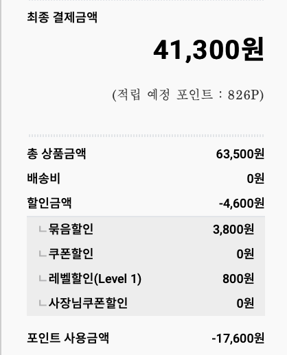 총 5만 8천 900원입니다. 엄청 저렴한 가격입니다.