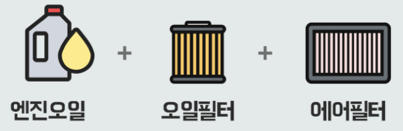 엔진오일 교체는 엔진오일과 오일필터 그리고 에어필터까지 교체를 해야 합니다.