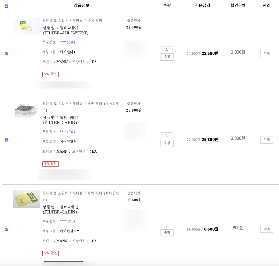 파트존에서 내 차량 정보를 등록만 해두면 내 차에 맞는 부품으로 검색이 되기 때문에 아주 편리합니다.