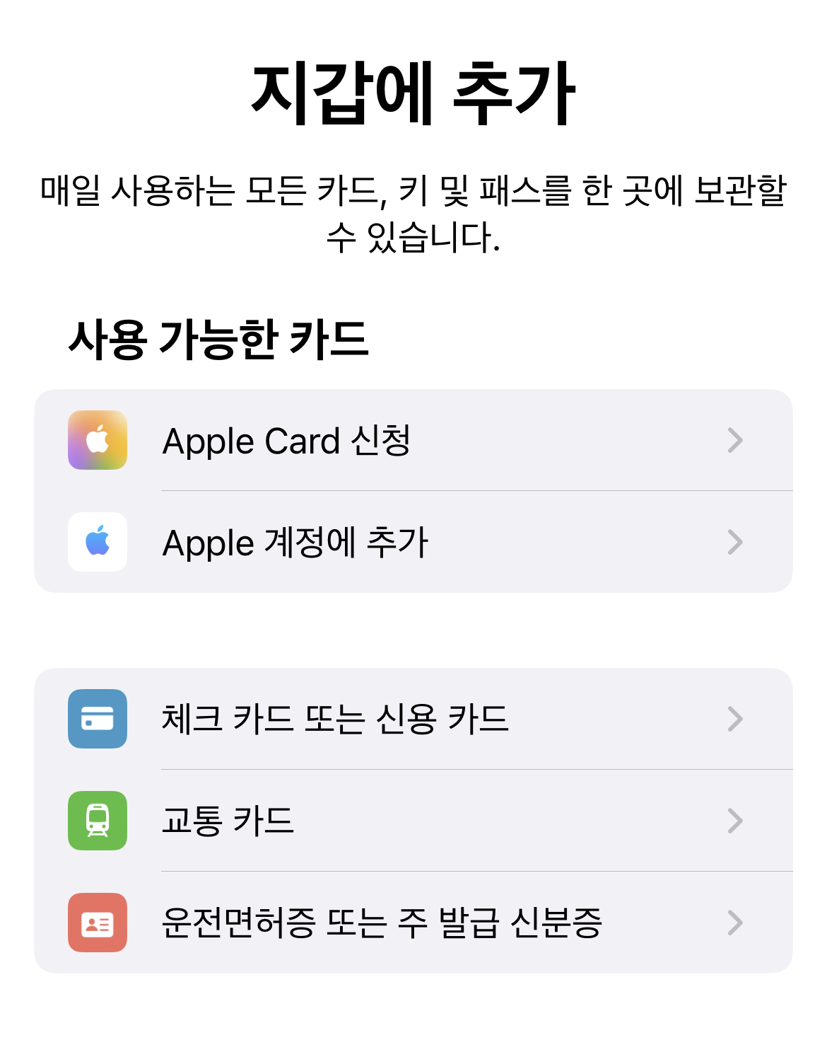 애플페이용 앱이 따로 있지 않고 지갑 앱에서 카드를 등록할 수 있습니다.