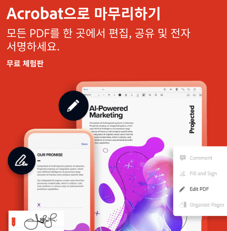 몰랐는데 어도비 아크로뱃 유료버전은 문서를 인쇄하지 않고 서명을 할 수 있는 기능도 있더군요.