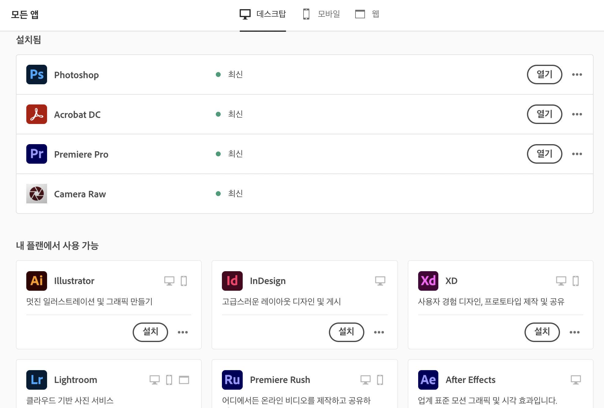 반대로 어도비 제품을 모두 이용할 수 있는 구독권을 이용한다면