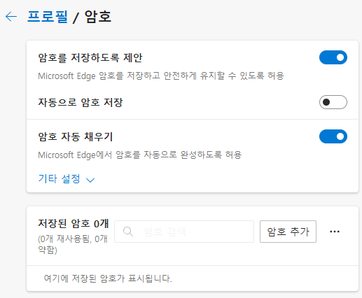 엣지 브라우저 암호 비밀번호 저장하고 싶지 않을 때 설정 방법