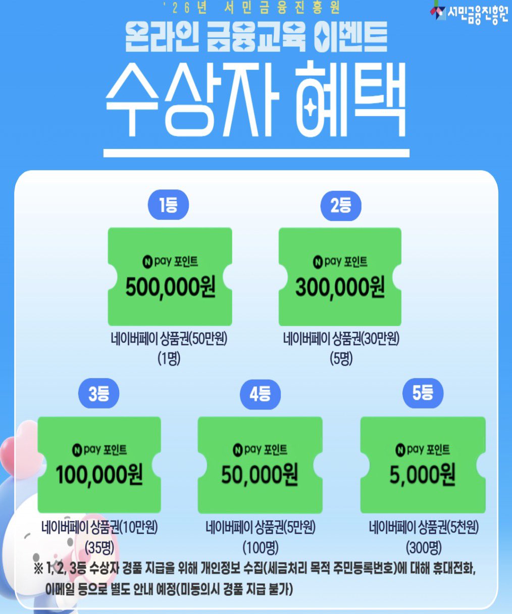 - 1등: 네이버페이 50만원 (1명)