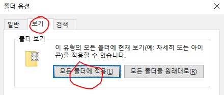 폴더 옵션이 나오면 아래 보기 탭 클릭하고