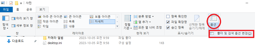 보기 - 옵션 - 폴더 및 검색 옵션 변경