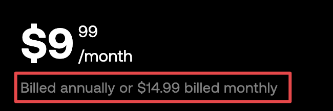 월 9.99달러라는 말은 1년치를 한꺼번에 납부할 때 가격이니 참고하세요. 매달 결제를 한다고 한다면 아래와 같이 15달러씩 결제해야 합니다.