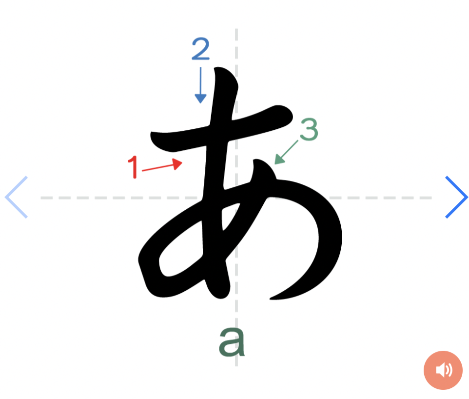 히라가나 글자 하나하나를 획순과 정확한 발음까지 제공해준다.