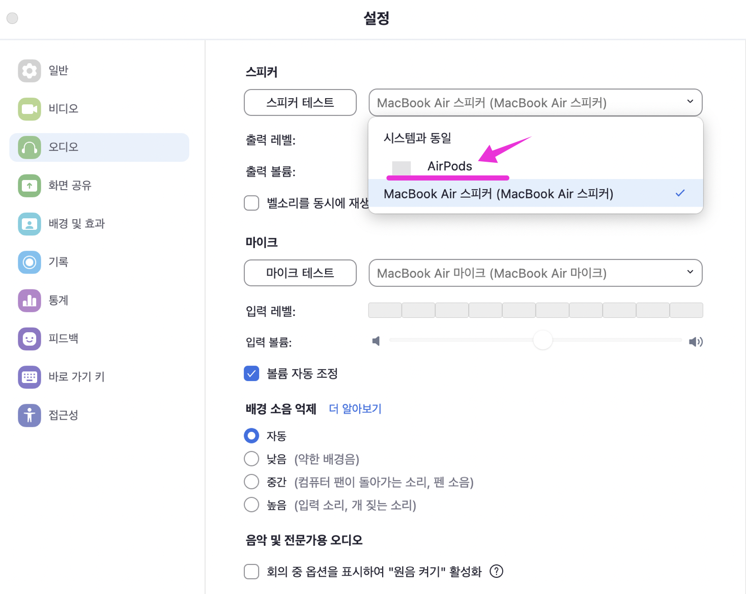 줌 화상회의 이어폰으로 출력 안되는 경우 10초 해결법