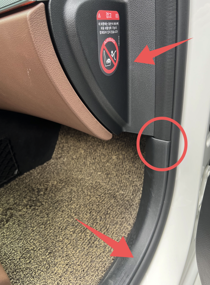 차량 내부에는 플라스틱으로 조립되어 쉽게 커버를 제거할 수 있는 부분이 있습니다.