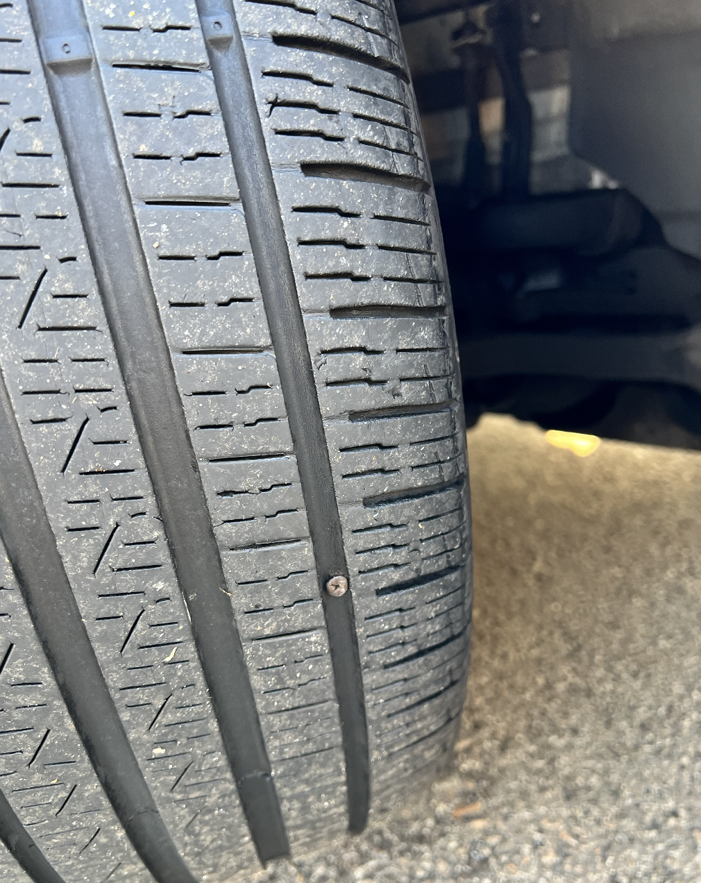 거의 목적지에 다 다를 때 갑자기 타이어 경고등이 들어왔습니다. 보통 전반적으로 타이어공기압이 낮아지는데 이번에는 조수석 타이어만 낮은 상태라 이상하네 생각이 들었습니다. 그런데 이 공기압이 눈으로 봐도 조금씩 빠지고 있는 것을 보고 이건 빵꾸인것 같다는 생각이 들더군요.