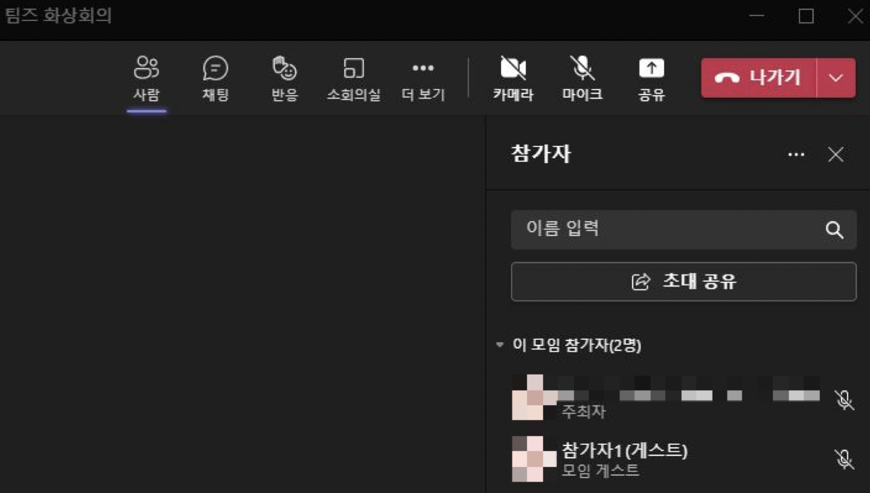아래 화면을 보면 주최자 아래에 참가자1(게스트)이 참석한 것을 볼 수 있다.