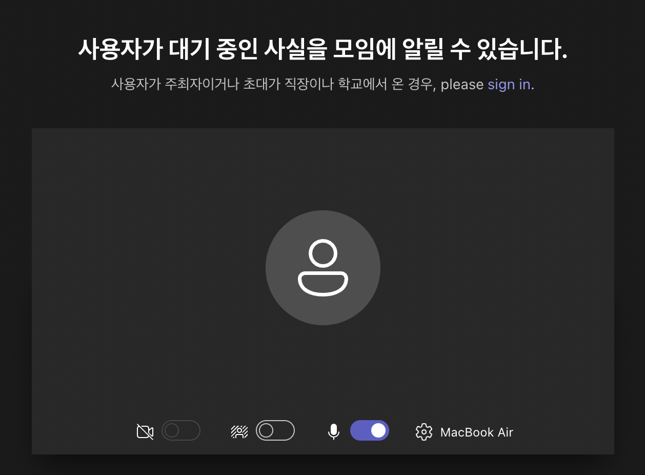 위와 같이 회의 참석자가 참석한다고 해서 바로 회의실에 입장할 수 있는 것은 아니다.