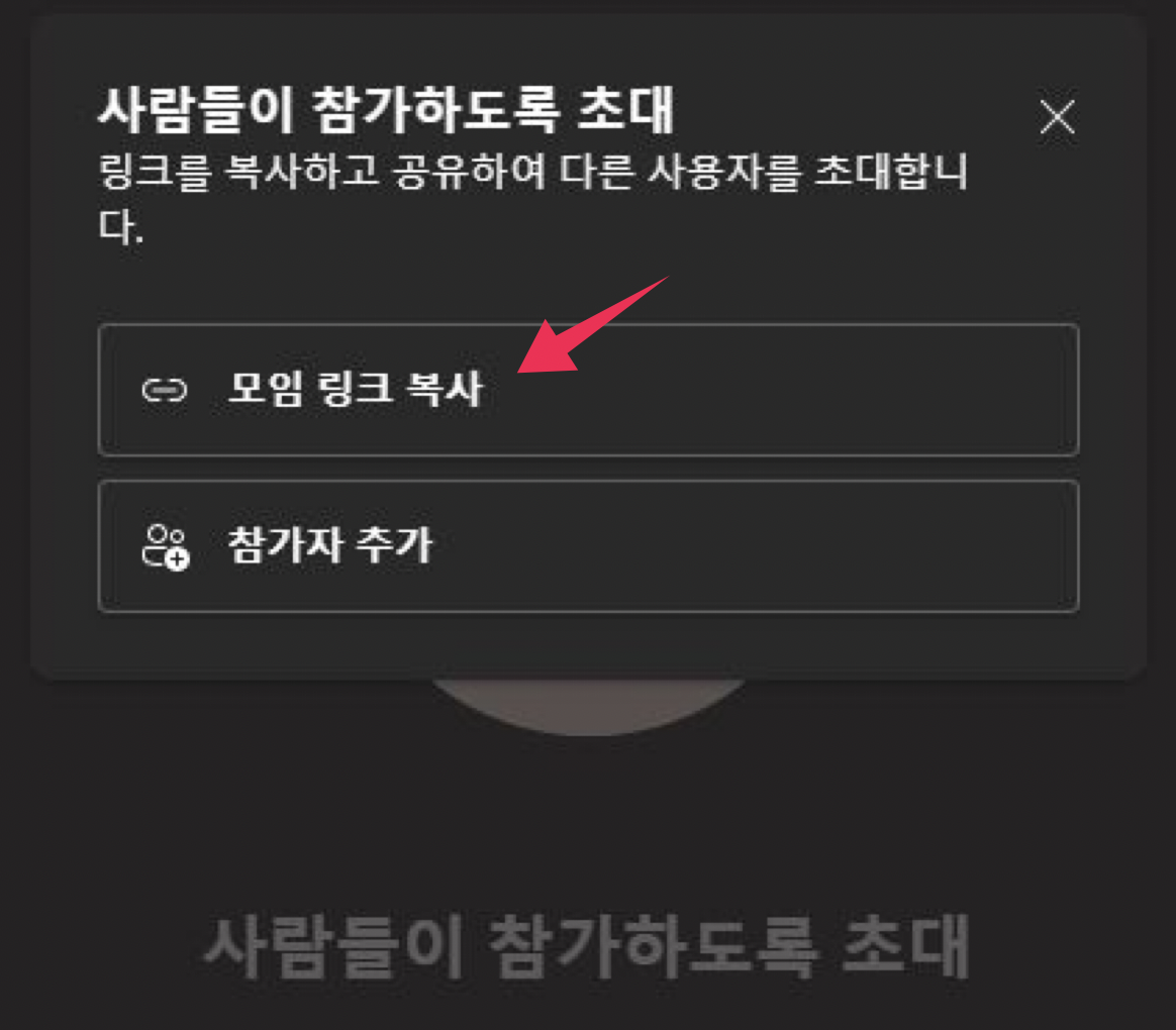 여기에서 <모임 링크 복사>를 클릭하고 카톡이나 문자, 이메일 등으로 보내주면 된다.