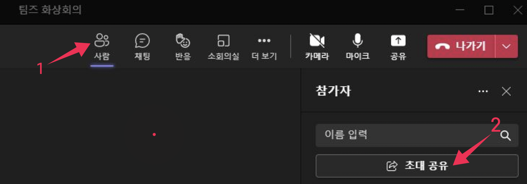 참성한 대화방의 아래 전체 화면에서 <사람 - 초대 공유>를 순서대로 클릭한다.