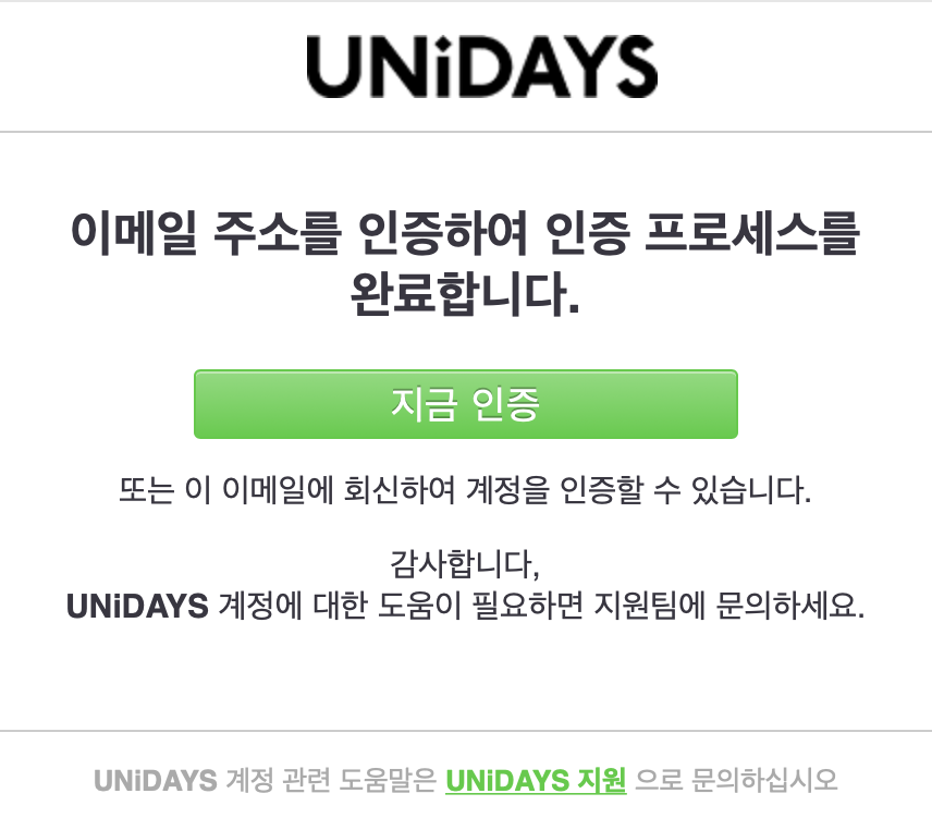 학생이나 교직원인지 인증은 유니데이즈(UNiDAYS)를 통해 인증하게 된다.