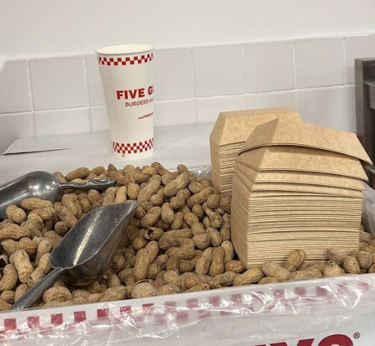 특별한 점은 햄버거를 주문하고 기다리는 시간에 땅콩을 가져가서 먹을 수 있다는 점인데 간도 심하지 않고 양껏 먹을 수 있어서 사람들이 좋아합니다. 마치 파이브가이즈 하면 땅콩이 생각나도록 한 것이지요.