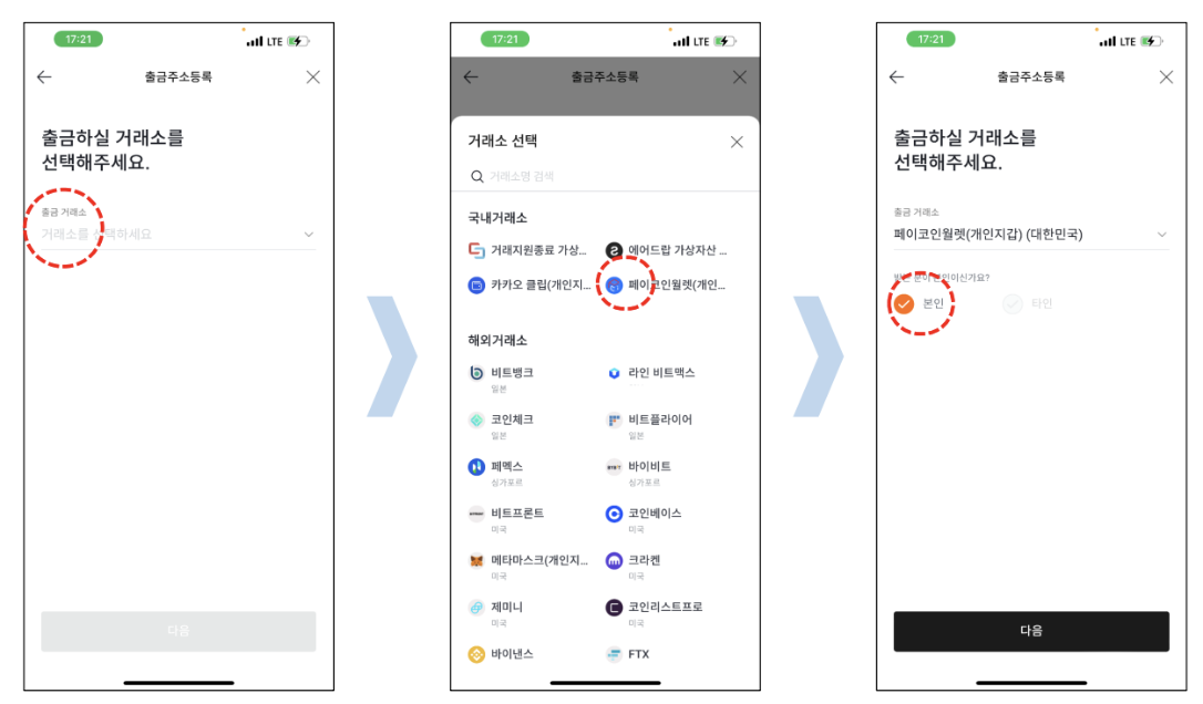 - 출금 거래소 메뉴에서 "페이코인 월렛"을 선택합니다.